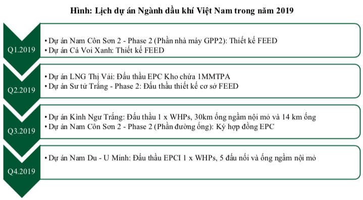 Nếu năm qua hưởng lợi từ giá dầu tăng trưởng mạnh khiến nhóm doanh nghiệp trung nguồn ghi nhận lợi nhuận lớn, thì 2019 sẽ là thời kỳ doanh nghiệp thượng nguồn, khối lượng công việc sẽ được gia tăng trước áp lực thiếu hụt năng lượng nói chung và nguồn khí nói riêng từ năm 2022 bắt buộc Tập đoàn Dầu khí (PVN) triển khai dự án.